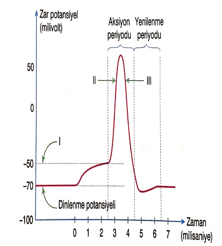 D. III sırasında hücre içindeki potasyum iyonları hücre dışına çıkar.