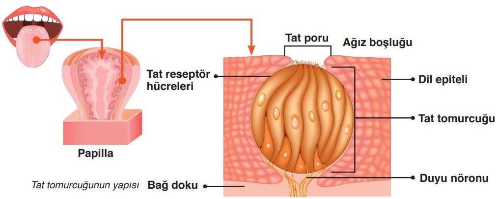 ► Beyinde tat duyusu, koku duyusuyla birlikte değerlendirildiğinden kokusunu alamadığımız besinlerin tadı da tam olarak alınamaz.