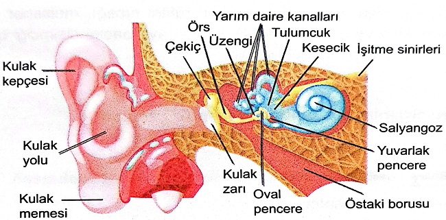 Buna göre, kulaktaki yapılar ve işlevleriyle ilgili aşağıdaki ifadelerden hangisi yanlıştır?