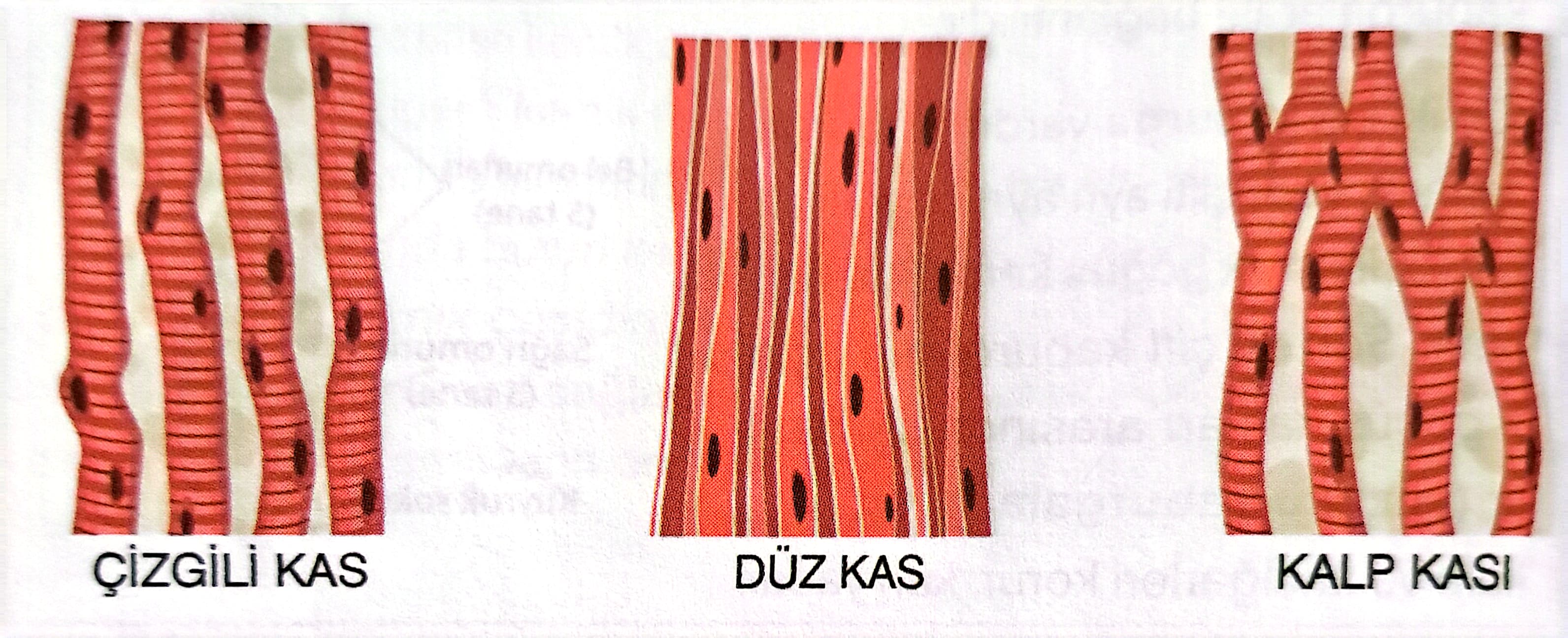 Vücudumuzda yapı ve çalışmalarına göre üç çeşit kas dokusu bulunur. Bunlar;