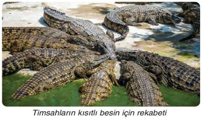 ► Timsahların besin, tarladaki mısır fidelerinin ise güneş ışığı veya topraktaki su için rekabet etmesi tür içi rekabete örnektir.