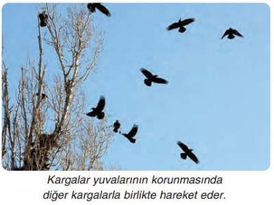 ► Bazı durumlarda da av popülasyonlarında alarm çağrıları oluşturulur ve popülasyonun bireyleri birleşip avcıya karşı birlikte mücadele eder. Örneğin kargalar, yuvalarına saldıran baykuşlara karşı diğer kargalarla birleşerek yuvalarını baykuşlardan korumaya çalışır.