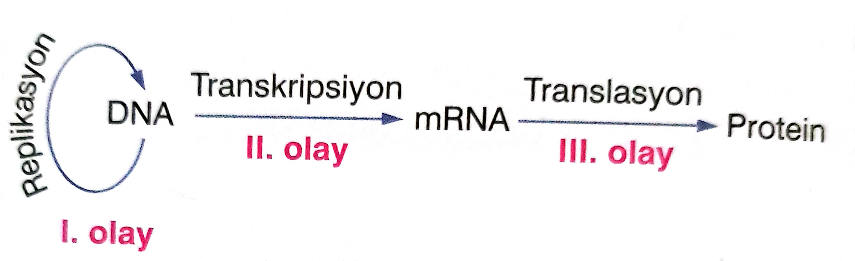 1. I çekirdekte, II ve III sitoplazmada gerçekleşir.