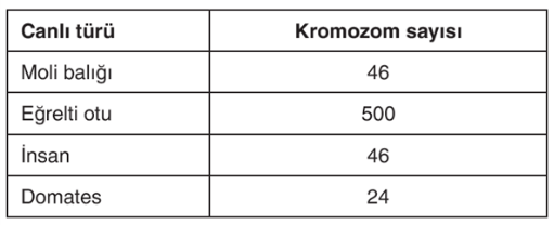 Bazı canlıların kromozom sayıları tabloda verilmiştir.