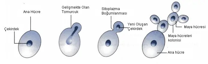 Yukarıda verilen şekilde bira mayasının (maya mantarı) üremesi verilmiştir.