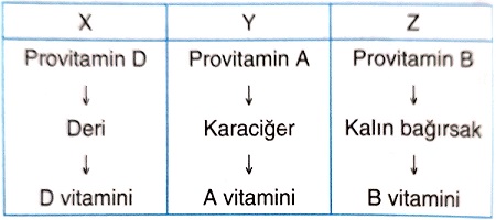 Aşağıda bazı vitaminlerle ilgili görev eşleştirmeleri verilmiştir.