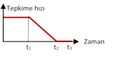 Aşağıdaki grafik optimum koşullarda devam etmekte olan bir tepkimenin bulunduğu ortam t1 anından itibaren inhibitör ilavesiyle tepkime hızında görülen değişimi göstermektedir.