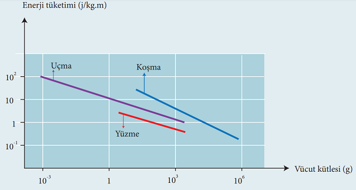 3. Enerji tüketimlerinde birim mesafe değilde birim zaman baz alınsaydı yüzen, uçan ve koşan hayvanlardan hangisinin harcadığı enerji daha fazla olurdu? Açıklayınız.