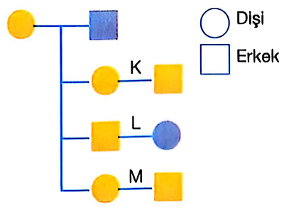 Soyağacında gösterilen K ve L bireylerinin genotipleri aşağıdakilerden hangileri olabilir?