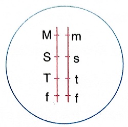 Genotipi Mm Ss Tt ff şeklinde olan bireyin üreme ana hücresine ait genlerin kromozom üzerindeki gösterimi aşağıda verilmiştir.