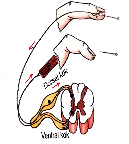 I. Dorsal kökte duyu nöronlar impulsları omuriliğe taşır.