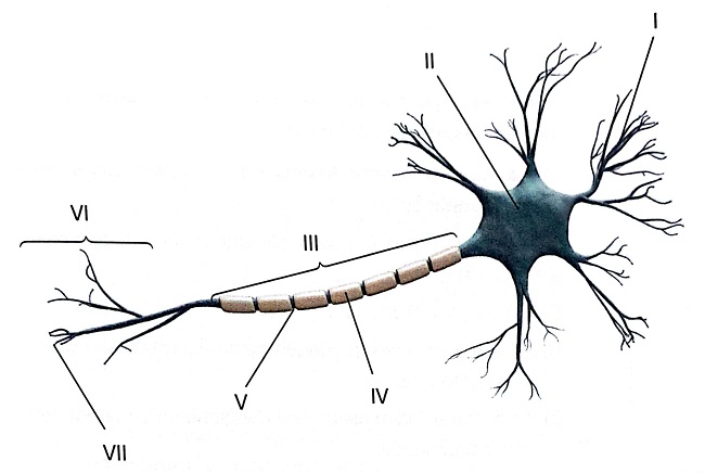 Aşağıda bir sinir hücresinin kısımları numaralandırılmıştır. Kısımların isimlerini yazınız.