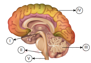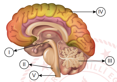 Aşağıda merkezî sinir sisteminin bir parçası olan beyinde bulunan bazı kısımlar numaralanmış şekilde gösterilmiş ve insanda görülen farklı refleks örnekleri verilmiştir.