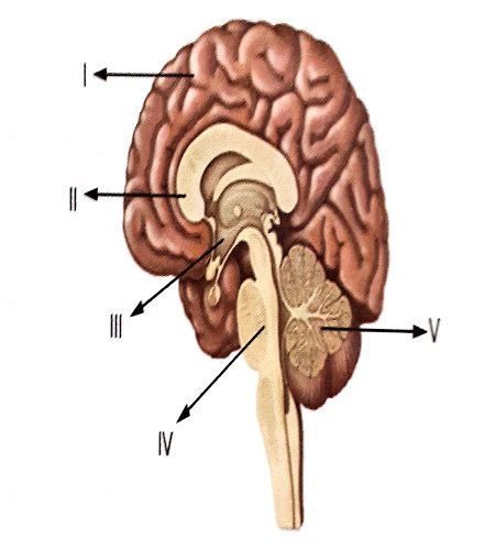 Merkezi sinir sisteminin şematik olarak gösterilen bu bölümü sağlıklı bir insanda aşağıdaki işlevlerden hangisinin gerçekleştirlmesinde doğrudan etki göstermez?