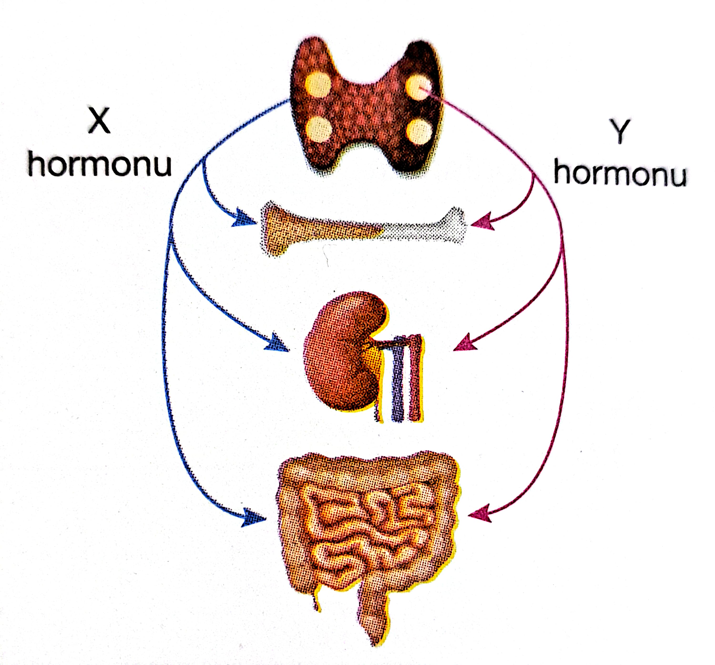 II. X hormonu kalsitonin, Y hormonu parathormondur.