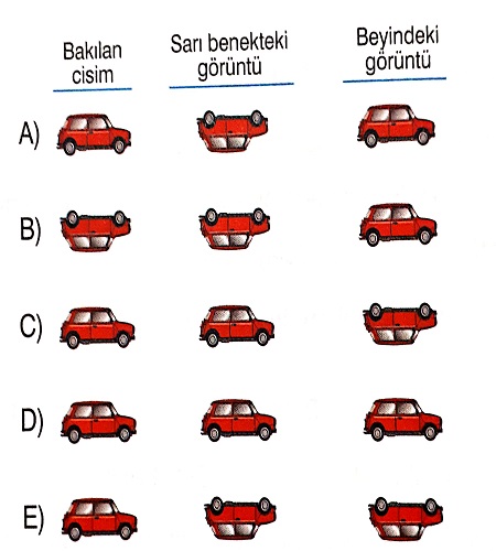 Bakılan bir cismin sarı benek ve beyinde oluşan görüntüsü aşağıda verilenlerden hangisindeki gibi olur?