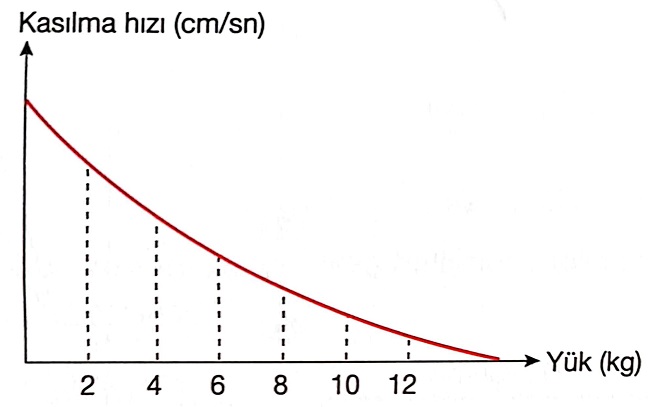 Aşağıdaki grafikte bir kol kasının yük miktarı ile kasılma hızı arasındaki ilişki verilmiştir.