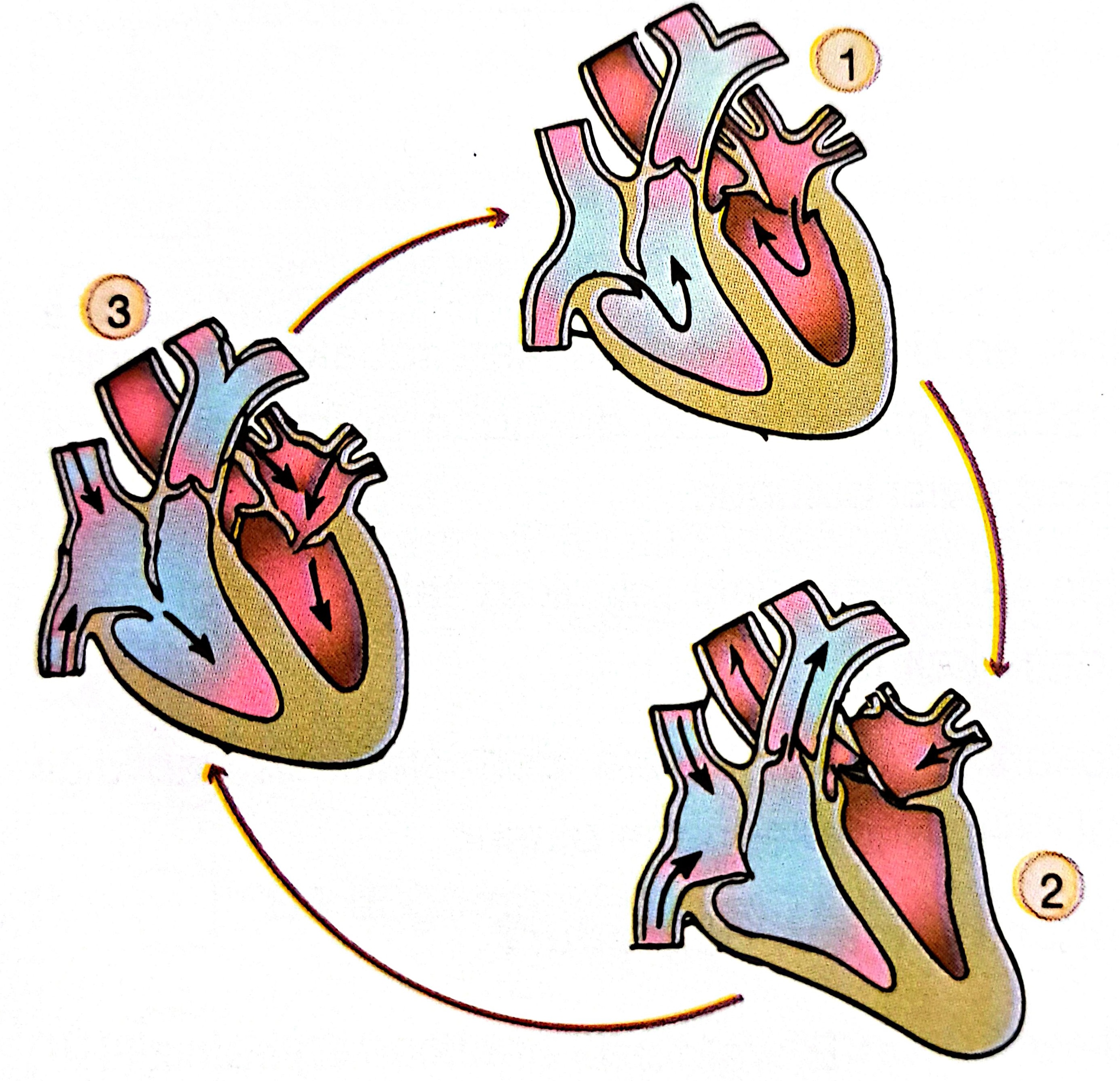 Yukarıda kalp döngüsüne ait aşamalar numaralandırılarak gösterilmiştir.