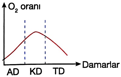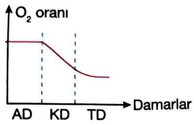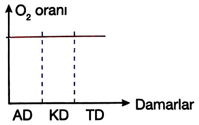 Büyük kan dolaşımında kanın O2 oranındaki değişimi aşağıdaki grafiklerden hangisidir?