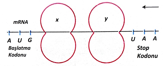 Bir mRNA molekülü aşağıdaki şekilde verildiği gibi X ve Y ribozomlarına bağlanmıştır. Buna göre aşağıdaki soruları cevaplayınız.