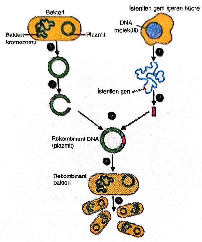 a. Büyüme hormonu geninin enzim ile kesilmesi sırasında ve rekombinant DNA molekülünün elde edilmesi sırasında hangi enzimler kullanılır? ...............