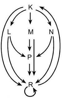 Aşağıda bir ekosistemdeki 6 türü içeren besin ağı şematize edilmiştir. (Türler arasındaki oklar bu ekosistem içindeki beslenme ilişkilerini göstermektedir.)