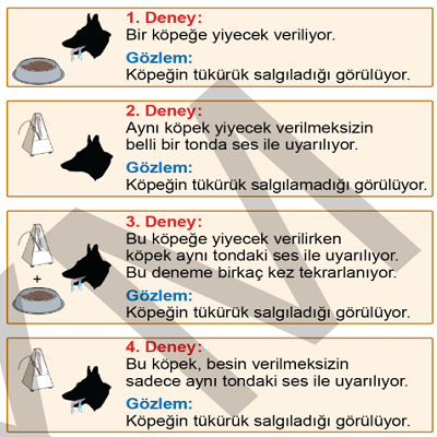 II. Normal bir uyarı, yapay bir uyarı ile birlikte verildikten sonra canlı, sadece yapay uyarıya bile tepki vermeyi öğrenebilir.
