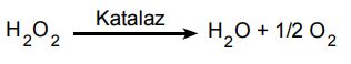 (Karaciğer hücrelerinde bulunan katalaz enzimi, hidrojen peroksiti (H2O2) suya ve oksijene parçalar.)
