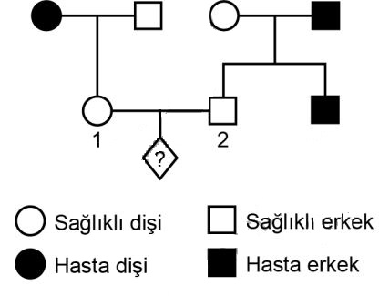 Buna göre 1 ve 2 numaralı bireylerin evliliğinden doğacak çocuğun hemofili olma olasılığı kaçtır?