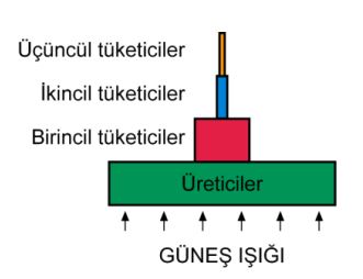 Bu besin piramidinde tabandan yukarıya doğru gidildikçe,