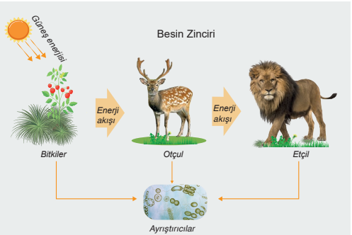 ► Ekosistemde enerji, canlılar arasında beslenme yoluyla bir canlıdan diğerine aktarılır.