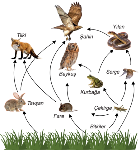 Örnek “Yonca → Tavşan → Kurt → Kartal” zincirine göre: