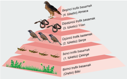 ► Trofik basamak: Beslenme düzeyindeki her bir basamak (üretici, tüketici düzeyleri gibi).
