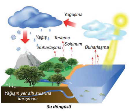 ► Suyun yeryüzü–atmosfer arasında sürekli dolaşımına su döngüsü denir.