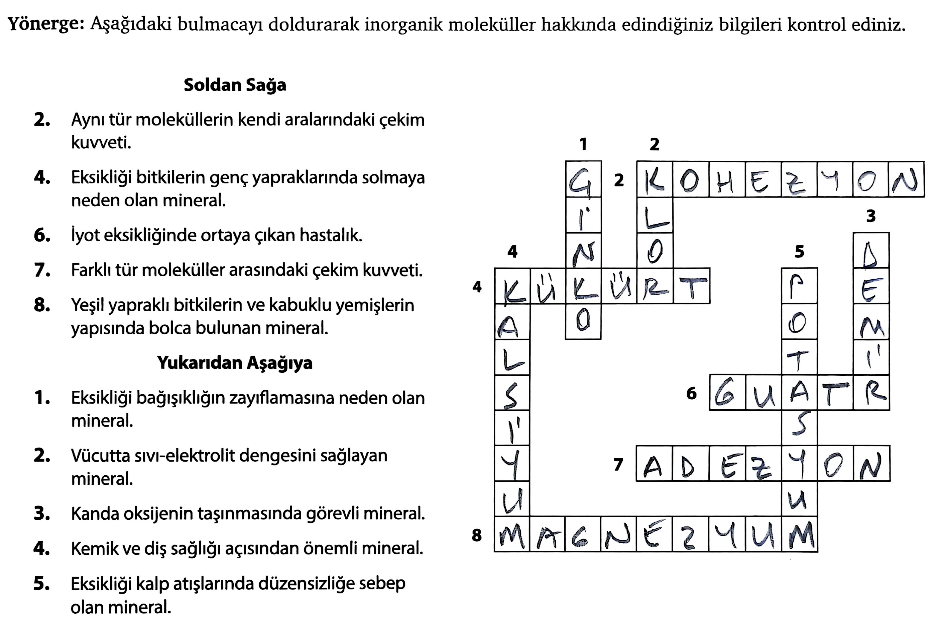 1. Günlük Hayattaki Örnekler: Öğrenciler, su içmenin ve minerallerin (örneğin, tuz, süt) tüketiminin yaşamlarındaki etkisini paylaşabilir.