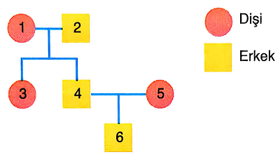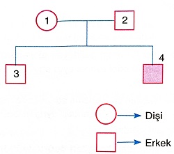 ► Soyağacında kare şeklinde gösterilen bireyler erkekleri, daire şeklinde gösterilen bireyler dişileri temsil etmektedir.