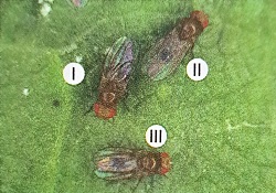 68038 kromozoma sahip Drosphila mekanıgaster (meyve sineği) popülasyonuna ait üç farklı birey şekilde verilmiştir.