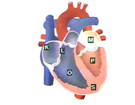 Resimde kalp şeklinde SA ve AV sinir düğümlerinin bulunduğu kısımlar hangi harflerle işaretlenmiştir?