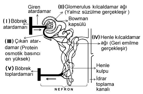 I. Henle kulpunun ine ve çıkan kolları suyun en fazla geri emilimine neden olan bölgelerini oluşturur.